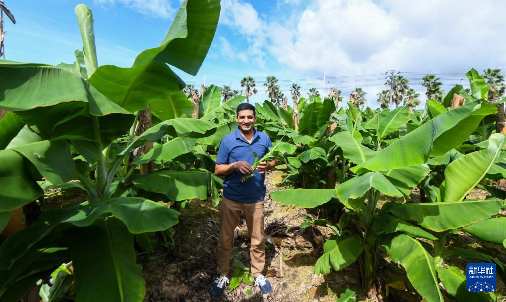 7月29日,瓦西姆·拉扎在海南三亞崖州灣科技城香蕉試驗田中。